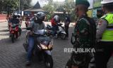 Petugas memeriksa pengendara motor yang melintas di Cek Poin Pembatasan Sosial Berskala Besar (PSBB) di Jalan Ahmad Yani Utara, Malang, Jawa Timur, Senin (18/5/2020). Petugas dan relawan yang bertugas dalam rangka PSBB di kawasan Malang Raya tersebut meminta sejumlah pengendara motor berplat nomor luar kota tanpa surat tugas untuk berputar balik (FOTO : ARI BOWO SUCIPTO/ANTARA FOTO)