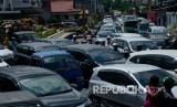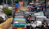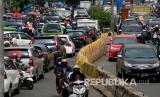 Sejumlah kendaraan bermotor memadati Jalan Raya Bogor, Cibinong, Kabupaten Bogor, Jawa Barat, Senin (18/5/2020). Kemacetan jalan saat penerapan Pembatasan Sosial Berskala Besar (PSBB) tersebut disebabkan oleh banyaknya warga keluar rumah untuk membeli kebutuhan menjelang Idul Fitri. (FOTO : Antara/Yulius Satria Wijaya)