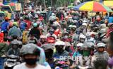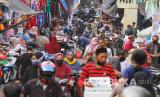 Sejumlah warga dan pengendara motor memadati kawasan Pasar Anyar, Kota Bogor, Jawa Barat, Senin (18/5/2020). Kawasan pasar tradisional tersebut dipadati warga yang ingin berbelanja kebutuhan lebaran meskipun Pemerintah Kota Bogor sedang menerapkan Pembatasan Sosial Berskala Besar (PSBB) untuk mencegah penyebaran virus Corona (COVID-19). (FOTO : Antara/Arif Firmansyah)