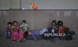 Salah satu keluarga pekerja migrant memeriksa jadual kereta diluar stasiun kereta api ketika masa lockdown diperpanjang di New Delhi, India, Senin (18/5). India telah mencatat rekor lonjakan harian dalam kasus baru virus Corona (FOTO : AP/Manish Swarup)