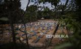 Kuburan untuk orang-orang yang telah meninggal dalam sebulan terakhir mengisi bagian baru dari pemakaman Nossa Senhora Aparecida di Manaus, Brasil, Senin (11/5). Suku-suku pribumi yang tinggal di Sungai Solimoes dan Negro yang bergabung di Manaus untuk membentuk Sungai Amazon mencoba selama berminggu-minggu untuk menutup cadangan mereka dari virus, memohon sumbangan sambil menunggu pengiriman bantuan makanan dari pemerintah sehingga mereka dapat tetap terisolasi (FOTO : AP/Felipe Dana)