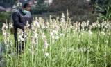 Pengunjung melihat tanaman bunga sedap malam yang dibudidayakan di Desa Padaasih, Cisarua, Kabupaten Bandung Barat, Rabu (20/5). Menurut keterangan petani di kawasan tersebut, penjualan bunga sedap malam mengalami penurunan hingga 30 persen dibandingkan dengan Lebaran tahun lalu akibat Covid-19 (FOTO : ABDAN SYAKURA/REPUBLIKA)