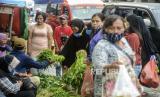 Sejumlah warga saat belanja sayur di Pasar Minggu, Jakarta, Kamis (21/5). Meskipun sedang diberlakukannya masa Penerapan Sosial Berskala Besar, kini masyarakat mulai memadati pasar-pasar tradisional untuk membeli kebutuhan menyambut Hari Raya Idul Fitri (FOTO : Republika/Putra M. Akbar)