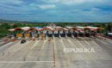 REPUBLIKA.CO.ID, CIREBON -- Kendaraan melintas di pintu Tol Cipali Palimanan, Cirebon, Jawa Barat, Kamis (21/5/2020).