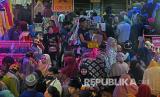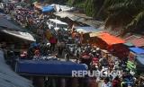 Sejumlah warga memadati area penjualan pakaian di Pasar Induk Rau di Serang, Banten, Jumat (22/5/2020). Deputi Pencegahan Badan Nasional Penanggulangan Bencana Lilik Kurniawan mengatakan pemerintah saat ini tengah memikirkan upaya untuk menyelamatkan perekonomian, namun kebijakan Pembatasan Sosial Berskala Besar tetap diperlukan dan semua warga harus disiplin mematuhi protokol kesehatan seperti menjaga jarak serta mengenakan masker saat di tempat umum agar tidak terjadi lonjakan kasus COVID-19 dan Indonesia bisa terhindar dari ancaman COVID-19 gelombang II. (FOTO : Antara/Asep Fathulrahman)