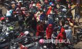 REPUBLIKA.CO.ID, SERANG -- Sejumlah warga memadati area parkir Pasar Induk Rau di Serang, Banten, Jumat (22/5/2020).