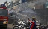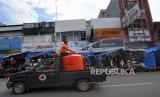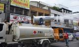 REPUBLIKA.CO.ID, BANTEN -- Petugas Palang Merah Indonesia menyemprotkan cairan disinfektan ke area pertokoan di Pasar Lama, Serang, Banten, Sabtu (23/5/2020). Penyemprotan dilakukan untuk menekan penyebaran COVID-19 terkait meningkatnya kegiatan masyarakat di pasar menjelang Lebaran.