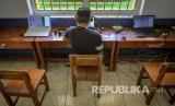 REPUBLIKA.CO.ID, TANGERANG -- Seorang warga binaan menerima kunjungan keluarganya melalui fasilitas panggilan video di Lapas Pembinaan Khusus Anak (LPKA) Klas IA, Kota Tangerang, Banten, Senin (25/5/2020).
