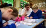 Kindergarten students work on an activity at Annandale Public School in Sydney, Australia, 25 May 2020. Students returned to classroom learning on 25 May, in New South Wales as coronavirus related restrictions are eased in the state. (FOTO : EPA-EFE/JOEL CARRETT)