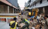 Sejumlah anggota Satpol PP Kota Bogor bersama TNI AD dan Dinas Lingkungan Hidup dan Kebersihan Kota Bogor membongkar lapak pedagang kaki lima (PKL) di jalan Pedati, Kota Bogor, Jawa Barat, Selasa (26/5/2020). Pembongkaran ratusan lapak PKL di jalan Pedati dan Lawang Saketeng, Kota Bogor tersebut dilakukan untuk penataan kawasan yang akan dibangun Pemerintah Kota Bogor untuk pedestrian (FOTO : ANTARA/ARIF FIRMANSYAH)