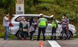 Polisi menginterogasi sejumlah penumpang yang diduga menumpang mobil bernomor polisi palsu saat penyekatan pemudik di Gerbang Tol Kalikangkung, Semarang, Jawa Tengah (26/5/2020). Satlantas Polrestabes Semarang mencatat sejak pukul 07:00 - 17:00 WIB sebanyak 276 kendaraan bermotor roda empat maupun bus yang mengangkut pemudik menuju DKI Jakarta melalui gerbang tol tersebut diperintahkan untuk memutar balik karena tidak dilengkapi surat ijin keluar-masuk (SIKM) (FOTO : ANTARA/aji styawan)