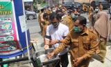Sejumlah Aparatur Sipil Negara (ASN) antre untuk mencuci tangan saat menghadiri acara halal bihalal yang di selenggarakan Pemerintah Kabupaten Aceh Barat di Pendopo Bupati Aceh Barat, Aceh, Selasa (26/5/2020). Pemerintah Kabupaten Aceh Barat melaksanakan Halal Bihalal Idul Fitri 1441 H dengan mengikuti protokol kesehatan untuk mencegah penularan COVID-19. (FOTO : ANTARA/Syifa Yulinnas)