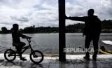 Seorang anak beraktivitas di Situ Ciburuy, Padalarang, Kabupaten Bandung Barat, Rabu (27/5). Meski Situ Ciburuy terbuka untuk umum, namun kawasan wisata tersebut sepi pengunjung dampak pandemi Covid-19 (FOTO : ABDAN SYAKURA/REPUBLIKA)