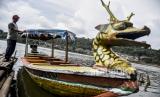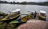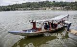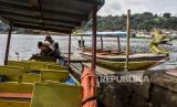 Pengunjung menaiki perahu di Situ Ciburuy, Padalarang, Kabupaten Bandung Barat, Rabu (27/5). Meski Situ Ciburuy terbuka untuk umum, namun kawasan wisata tersebut sepi pengunjung dampak pandemi Covid-19 (FOTO : ABDAN SYAKURA/REPUBLIKA)