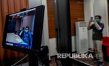 REPUBLIKA.CO.ID, JAKARTA -- Petugas merekam sidang dakwaan kasus dugaan korupsi penetapan pergantian antar waktu (PAW) anggota DPR periode 2019-2024 secara virtual dengan terdakwa mantan Komisioner Bawaslu Wahyu Setiawan (ketiga kanan) dan mantan anggota Bawaslu Agustiani Tio Fridelina (kedua kanan) di Gedung KPK, Jakarta, Kamis (28/5).