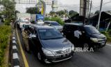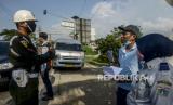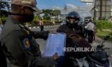 REPUBLIKA.CO.ID, BEKASI -- Sejumlah petugas gabungan memutarbalikan pengendara mobil tanpa Surat Izin Keluar Masuk (SIKM) yang akan memasuki wilayah DKI Jakarta di perbatasan Bekasi-Karawang, Jawa Barat, Jumat (29/5).