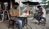 REPUBLIKA.CO.ID, MAKASSAR -- Pengunjung dengan sekat plastik duduk berjaga jarak di salah satu warung kopi di Makassar, Sulawesi Selatan, Jumat (29/5/2020).