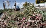 Petani memanen bawang merah di area persawahan Kretek, Bantul, DI Yogyakarta, Jumat (29/5/2020). Menurut petani setempat, harga jual bawang merah melonjak dari panen sebelumnya Rp10 ribu per kilogram menjadi Rp30 ribu hingga Rp38 ribu per kilogram (FOTO : Hendra Nurdiyansyah/ANTARA FOTO)