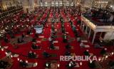 REPUBLIKA.CO.ID, ISTANBUL -- Sejumlah jamaah memakai masker saat mereka menghadiri shalat Jumat di Masjid Fatih, Istanbul, Turki, Jumat (29/5). Shalat Jumat setelah 74 hari dengan jarak sosial di tengah pandemi virus corona.