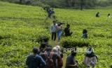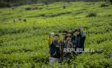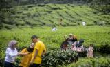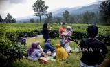REPUBLIKA.CO.ID, BOGOR -- Sejumlah warga berwisata di kawasan kebun teh Puncak, Bogor, Jawa Barat, Sabtu (30/5). Meskipun dalam masa Pembatasan Sosial Berskala Besar (PSBB) kawasan Puncak tetap ramai dikunjungi wisatawan.