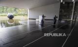 Pekerja membersihkan lantai Masjid Al-Irsyad Satya, Kota Baru Parahyangan, Kabupaten Bandung Barat, Jawa Barat, Sabtu (30/5/2020). Pemprov Jawa Barat akan memberlakukan penerapan tatanan Normal Baru (New Normal) pada 1 Juni di 15 kota/kabupaten secara bertahap yang dimulai dari pembukaan rumah ibadah dalam upaya pencegahan penyebaran COVID-19 (FOTO : M Agung Rajasa/ANTARA FOTO)