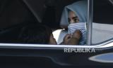 Warga duduk di dalam kendaraannya di KM 47 Tol Cikampek-Jakarta, Jawa Barat, Sabtu (30/5/2020). Kementerian Perhubungan memprediksi potensi lonjakan arus balik lebaran 2020 akan terjadi pada 30 Mei - 1 Juni, sehingga pengawasan di sejumlah titik pemeriksaan Surat Izin Keluar Masuk (SIKM) akan diperketat (FOTO : Antara/Muhammad Adimaja)