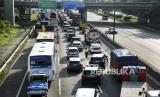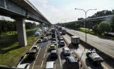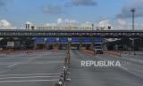 Suasana gerbang Tol Cikampek di Jawa Barat, Sabtu (30/5/2020). Kementerian Perhubungan memprediksi potensi lonjakan arus balik lebaran 2020 akan terjadi pada 30 Mei - 1 Juni, sehingga pengawasan di sejumlah titik pemeriksaan Surat Izin Keluar Masuk (SIKM) akan diperketat (FOTO : Antara/Muhammad Adimaja)