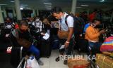 Sejumlah Pekerja Migran Indonesia (PMI) bersiap untuk naik ke kapal di ruang tunggu Pelabuhan Dwikora, Pontianak, Kalimantan Barat, Sabtu (30/5/2020). Sebanyak 130 PMI yang dideportasi dari Malaysia diberangkatkan ke Semarang, Jawa Tengah dengan menumpang KM Dharma Rucitra 9 dan semuanya telah menjalani rapid test COVID-19 dengan hasil non reaktif. (FOTO : Antara/Jessica Helena Wuysang)