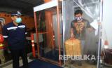 Seorang Pekerja Migran Indonesia (PMI) berjalan keluar dari bilik disinfeksi sebelum naik ke kapal di Pelabuhan Dwikora, Pontianak, Kalimantan Barat, Sabtu (30/5/2020). Sebanyak 130 PMI yang dideportasi dari Malaysia diberangkatkan ke Semarang, Jawa Tengah dengan menumpang KM Dharma Rucitra 9 dan semuanya telah menjalani rapid test COVID-19 dengan hasil non reaktif. (FOTO : Antara/Jessica Helena Wuysang)