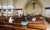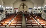Gereja mewajibkan umat menggunakan masker, mencuci tangan dan berjaga jarak saat ibadah guna mencegah penyebaran COVID-19.
