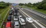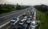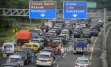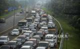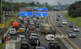 REPUBLIKA.CO.ID, BOGOR -- Antrean kendaraan menuju Gerbang Tol Gadog di Bogor mengular, Ahad (31/5). Mereka mengantre menunggu pembukaan jalur saru arah menuju Jalur Puncak Bogor.