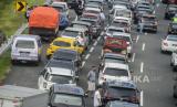 Sejumlah kendaraan menunggu waktu pembukaan jalur satu arah untuk menuju puncak di Bogor, Jawa Barat, Ahad (31/5). Pemberlakuan sistem satu arah itu dilakukan oleh Polisi untuk mengurai kepadatan kendaraan dari arah Puncak menuju e Jakarta ataupun sebaliknya (FOTO : Republika/Putra M. Akbar)
