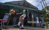 Pesepak bola Sutan Zico berlatih usai mengikuti pemusatan latihan Timnas Indonesia U-19 secara virtual di kediamannya di Desa Tlajung Udik, Gunung Putri, Kabupaten Bogor, Jawa Barat, Senin (1/6/2020). Sebanyak 44 pesepak bola menjalani pemusatan latihan Timnas U-19 yang dipimpin pelatih Shin Tae-yong melalui aplikasi layanan konferensi video sebagai persiapan dalam menghadapi Piala AFC U-19 2020 dan Piala Dunia U-20 2021 (FOTO : ANTARA/ADITYA PRADANA PUTRA)