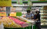 Pengunjung berbelanja di salah satu gerai hypermart di Jakarta, Senin (1/6). Kemendag telah menerbitkan surat edaran terkait penerapan skema new normal untuk sektor perdagangan yang tetuang salam surat edaran nomor 12 tahun 2020 (FOTO : Prayogi/Republika)