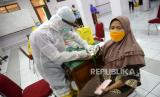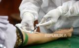 Petugas kesehatan mengambil sampel darah saat Rapid Diagnostic Test (RDT) pedagang di Pasar Beringharjo, Yogyakarta, Rabu (3/6). Sebanyak 58 pedagang pasar secara acak menjalani RDT dari Dinkes Kota Yogyakarta (FOTO : Wihdan Hidayat/ Republika)