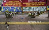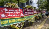 REPUBLIKA.CO.ID, JAKARTA -- Kiriman karangan bunga berjajar di Pengadilan Tipikor, Jakarta, Rabu (3/6/2020). Karangan bunga tersebut berasal dari korban terdampak kasus asuransi Jiwasraya yang mengharapkan lembaga terkait untuk memberikan keadilan bagi mereka