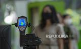 Sejumlah karyawan mengantre untuk mencoba alat pendeteksi suhu tubuh di Mal Central Park, Jakarta, Rabu (3/6/2020). Selain menerapkan protokol kesehatan ketat, sejumlah pusat perbelanjaan juga menyediakan fasilitas pendukung (FOTO : Antara/Aditya Pradana Putra)