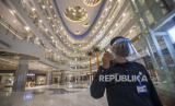 Petugas bermasker dan berpelindung wajah membersihkan lantai di Mal Central Park, Jakarta, Rabu (3/6/2020). Selain menerapkan protokol kesehatan ketat, sejumlah pusat perbelanjaan juga menyediakan fasilitas pendukung (FOTO : Antara/Aditya Pradana Putra)