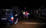 Dua warga membawa barang-barangnya saat akan mengungsi akibat rob (banjir pasang air laut) di Desa Dampyak, Kabupaten Tegal, Jawa Tengah, Rabu (3/6/2020) malam. (FOTO : Antara//Oky Lukmansyah)