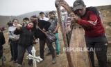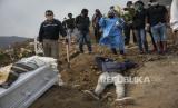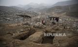 REPUBLIKA.CO.ID, PERU -- Pandemi Covid-19 menyisakan kisah sedih lain bagi korban meninggal di Kota Lima, Peru. Korban-korban meninggal ini dimakamkan di pemakaman umum dengan fasilitas seadanya.