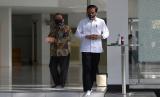 Presiden Joko Widodo (kanan) didampingi Mensesneg Pratikno meninjau kesiapan penerapan prosedur normal baru di Masjid Baiturrahim, Kompleks Istana Kepresidenan, Jakarta, Kamis (4/6/2020). (FOTO : ANTARA FOTO/Sigid Kurniawan)