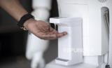 Robot perusahaan Robotika Andal mengeluarkan cairan pembersih tangan di Dubai, Uni Emirat Arab, Kamis (28/5).. Sebelum pandemi, perusahaan telah menyewa robot untuk acara menyambut tamu, tetapi sejak wabah Covid-19, Robotika Andal telah menggunakan teknologinya untuk membantu memerangi penyebaran virus Corona (FOTO : EPA)