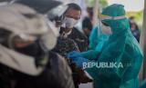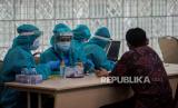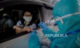 Pegawai KPK melakukan rapid test drive thru di Gedung KPK, Jakarta, Kamis (4/6). Rapid test yang diikuti sekitar dua ribu pegawai tersebut dilakukan guna mengantisipasi penyebaran COVID-19 sekaligus persiapan tatanan normal baru setelah masa PSBB berakhir (FOTO : Republika/Thoudy Badai)