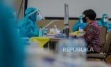 Pegawai KPK melakukan rapid test di Gedung KPK, Jakarta, Kamis (4/6). Rapid test yang diikuti sekitar dua ribu pegawai tersebut dilakukan guna mengantisipasi penyebaran COVID-19 sekaligus persiapan tatanan normal baru setelah masa PSBB berakhir (FOTO : Republika/Thoudy Badai)