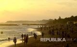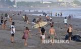 REPUBLIKA.CO.ID, BADUNG -- Wisatawan memadati kawasan Pantai Canggu, Badung, Bali, Kamis (4/6/2020).