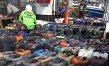 Petugas SPDN (Solar Packed Dealer Nelayan) Karangantu mengisi bahan bakar solar bersubsidi ke ratusan jerigen milik nelayan di Pelabuhan Karangantu, Serang, Banten, Kamis (4/6/2020). Menurut pengurus HNSI (Himpunan Nelayan Seluruh Indonesia) setempat kebutuhan solar untuk 177 kapal pencari ikan di lokasi itu rata-rata mencapai 148 ton per bulan, tapi baru bisa dipenuhi 110 ton per bulan sehingga nelayan yang tidak kebagian terpaksa membeli solar non-subsidi (FOTO : Antara/Asep Fathulrahman)