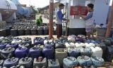 Petugas SPDN (Solar Packed Dealer Nelayan) Karangantu mengisi bahan bakar solar bersubsidi ke ratusan jerigen milik nelayan di Pelabuhan Karangantu, Serang, Banten, Kamis (4/6/2020). Menurut pengurus HNSI (Himpunan Nelayan Seluruh Indonesia) setempat kebutuhan solar untuk 177 kapal pencari ikan di lokasi itu rata-rata mencapai 148 ton per bulan, tapi baru bisa dipenuhi 110 ton per bulan sehingga nelayan yang tidak kebagian terpaksa membeli solar non-subsidi (FOTO : Antara/Asep Fathulrahman)