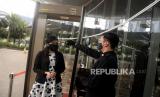 REPUBLIKA.CO.ID, DEPOK -- Karyawan dengan menggunakan pelindung wajah melayani tamu di The Margo Hotel, Depok, Jawa Barat, Jumat (5/6).