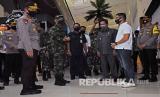 Kapolda Banten Irjen Pol Fiandar (tengah) didampingi Walikota Serang Syafrudin (ketiga kiri) meninjau kesiapan penerapan protokol kesehatan menjelang pemberlakuan tatanan normal baru di pusat perbelanjaan, di Serang, Banten, Jumat (5/6/2020). Peninjauan dilakukan untuk memastikan protokol kesehatan benar-benar diterapkan guna mencegah penyebaran COVID-19 saat tatanan normal baru diberlakukan beberapa pekan yang akan datang. (FOTO : Antara/Asep Fathulrahman)