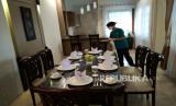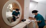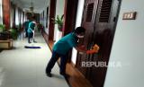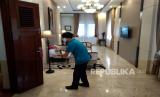REPUBLIKA.CO.ID, YOGYAKARTA -- Petugas membersihkan kamar dengan cairan disinfektan di Sudirman Suites Hotel Grand Inna Malioboro, Yogyakarta, Jumat (5/6).